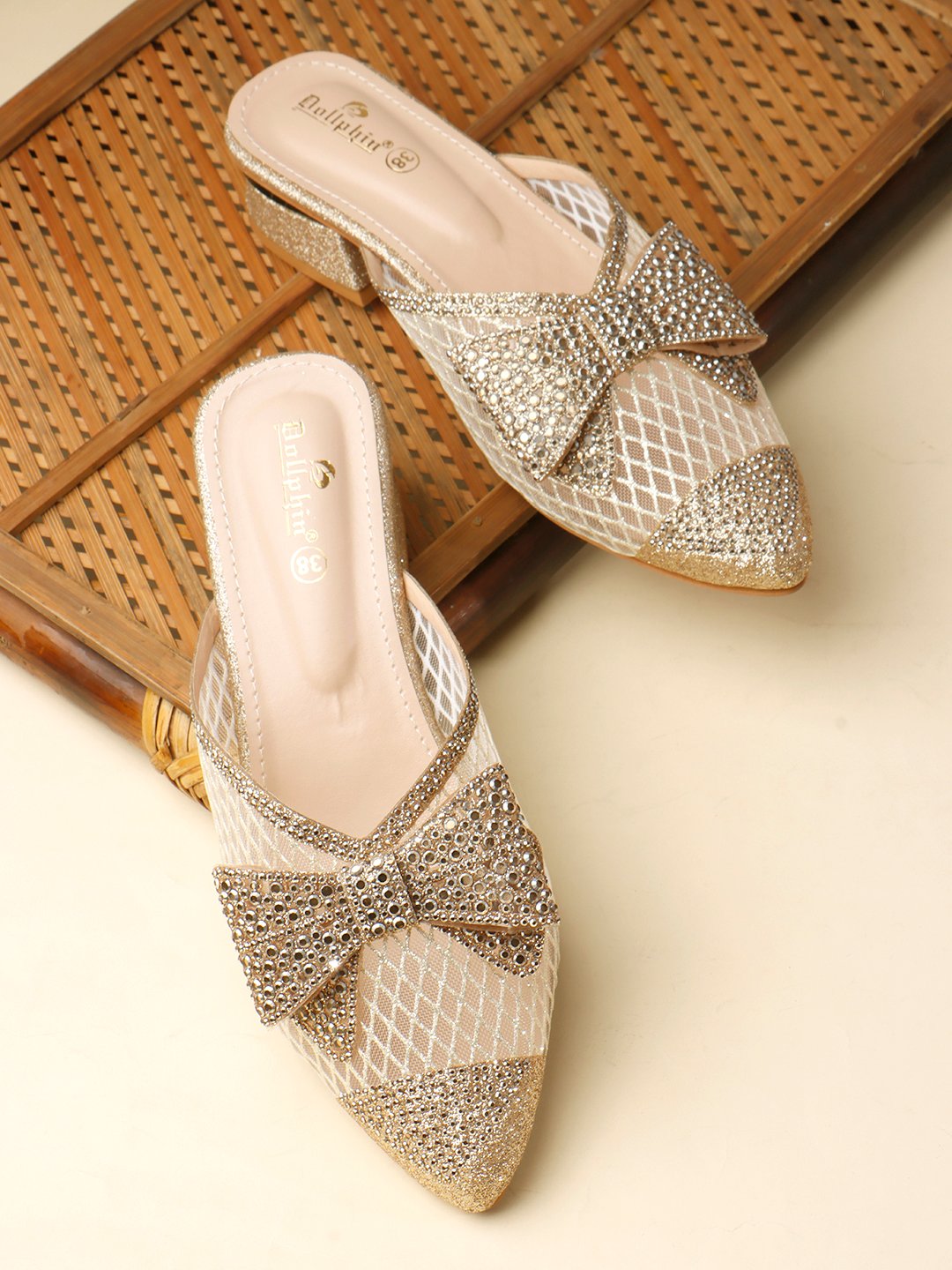 You're viewing: Women’s Mules Small Block Heel Wedding Pointed Toe with Intricate Rhinestone Net Design & Tie, Fancy DRN-29 Original price was: ₹3,999.00.Current price is: ₹2,199.00.